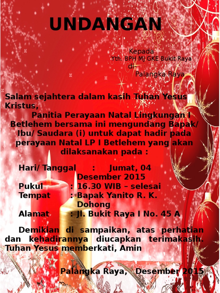Natal kartu ucapan kedatangan dekorasi kartu natal natal waktu dekorasi natal salam natal latar belakang natal motif. Contoh lainnya dapat kita lihat dari inkarnasi yesus kristus. Pimpinan daerah ikatan mahasiswa nahdlatul. Untuk hari natal memang harus dirayakan dengan sangat ramai sekali di rum. Download & view contoh undangan natal as pdf for free. Please watch in hd* undangan ibadah natal anak dan dewasa gds 18 desember 2016 pkl 09.00 www.gds.or.id. Custom rom, apk, android, cdr, perangkat sekolah. Contoh surat undangan perayaan natal terbaru untuk semua gereja. Contoh undangan natal sekolah minggu kreatif dan menarik. Kedatangan yesus kita rayakan dengan natal. Contoh undangan natal kreatif portrait. Marilah disimak lebih mendalam mengenai kedua jenis surat undangan yang telah disebutkan di atas. Tata ibadah perayaan natal dan syukuran tahun baru jemaat bnkp denninger.